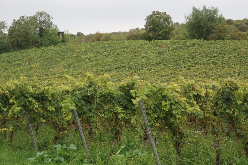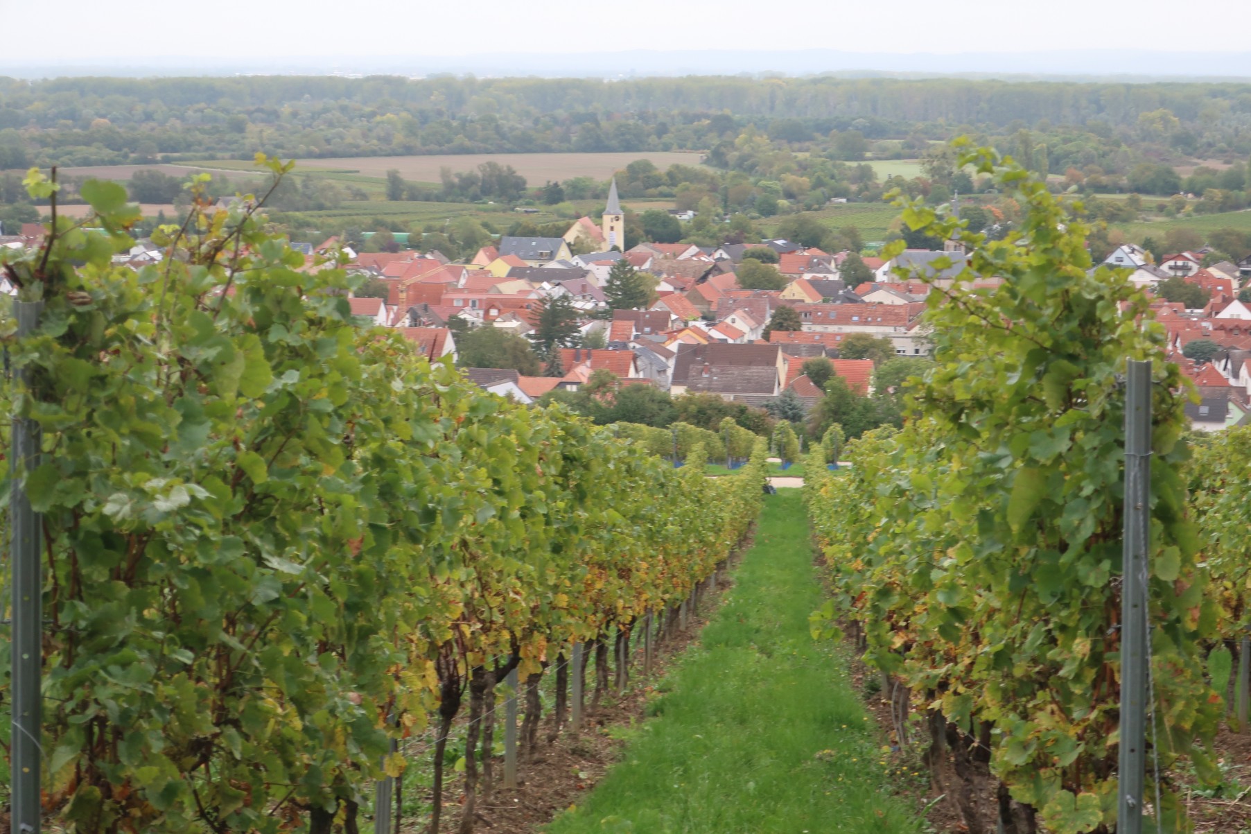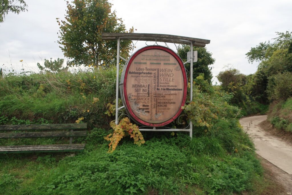 Der Weg heute war recht lang, und führte fast die ganze Zeit durch Weinberge. Es gab viele schöne Aussichten, unter anderen mehrfach auf die Bahn, die mich in kurzer Zeit ans Ziel gebracht hätte, aber ich blieb standhaft. Dank diverser Weinlehrpfade konnte ich mich auch önologisch etwas fortbilden. In Worms bin ich dann noch mit dem Bus in die Stadt, um neue Schuhe zu kaufen.